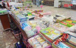 طرح فرع المؤسسة السورية للتجارة بحلب تشكيلة واسعة من القرطاسية واللوازم المدرسية بمختلف أصنافها في صالات البيع التابعة له وذلك استعداداً لبدء العام الدراسي الجديد.