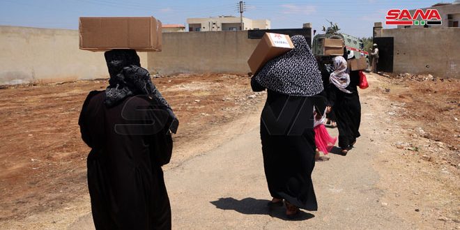 وذكر الدكتور عبد الله الفلاح عضو المكتب التنفيذي لمجلس محافظة درعا أن المساعدات مقدمة من روسيا الاتحادية وتنم عن عمق العلاقات بين سورية وروسيا مبينا أن المستفيدين هم العائلات الوافدة من منطقة درعا البلد والقاطنة ضمن مركز الإقامة المؤقتة في مدرسة ميسلون.