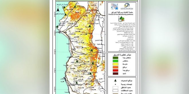 أعلنت منصة الغابات ومراقبة الحرائق التابعة للهيئة العامة للاستشعار عن بعد أن مؤشرات خطورة انتشار الحرائق تشير إلى استمرار تأثر مناطق الغابات في شمال غرب سورية بمستويي الخطورة المتوسط والمرتفع اعتباراً من اليوم وحتى يوم غد الخميس.