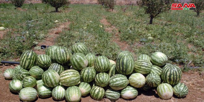وأشار شهيب إلى أن عمليات زراعة البطيخ تشمل مختلف مناطق المحافظة وخاصة الريف الغربي وتعمل المديرية على تشجيع زراعته ضمن الخطط الموضوعة لتأمين الاحتياجات المحلية منه وتحقيق مصدر دخل للعديد من الأسر العاملة بزراعته مشيرا إلى أن عمليات قطافه بدأت بداية الشهر الماضي وهي حاليا في مراحلها النهائية.