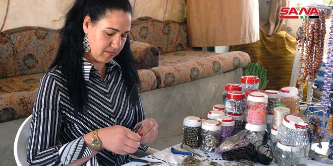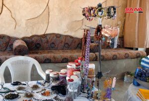 مي 44 عاماً ابنة المجاهد يوسف لمع كيوان ذكرت خلال حديثها لمراسل سانا أن مشروعها لم يقتصر على تصنيع الإكسسوار الخاص بالنساء والرجال بل ترافق أيضاً بتصنيع المشغولات الصوفية المتعددة على صنارة واحدة ممن تعلمتها سابقاً من والدتها إضافة إلى ما تقوم به من تصنيع منتجات الدبس والزبيب خلال المواسم وبيعها.