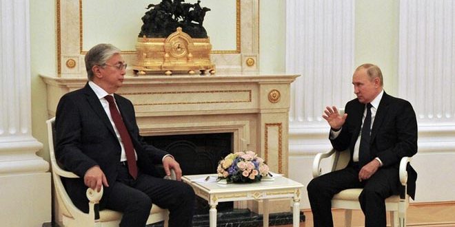 وقال الرئيس الروسي خلال لقائه في موسكو بنظيره الكازاخستاني قاسم جومارت توكاييف: “إن العمل على متابعة هذه القضايا سيتم داخل منظمة شنغهاي للتعاون ومنظمة معاهدة الأمن الجماعي كما هو مخطط في منتصف شهر أيلول القادم”.