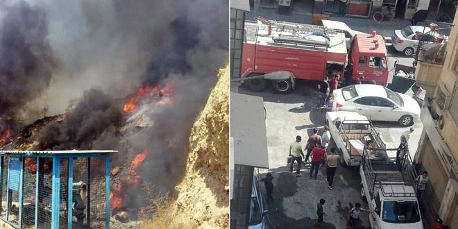 أخمد عناصر فوج إطفاء دمشق حريقين أحدهما نشب بمنزل في شارع الملك فيصل والآخر في أعشاب وأشجار ودواليب على طريق الربوة.