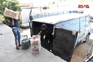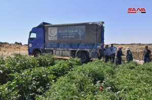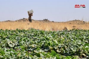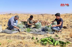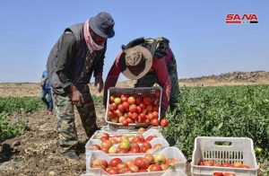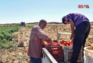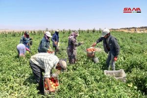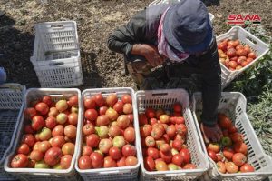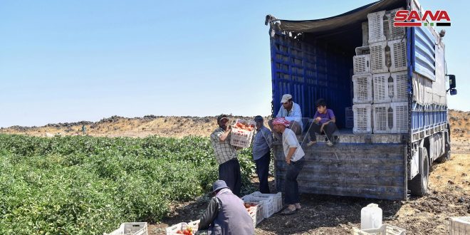 كاميرا سانا واكبت استجرار سيارات السورية للتجارة محصول فلاحي بلدة دير ماكر بريف دمشق من مادتي البندورة والخيار ونقلها إلى سوق الهال لتوزيعها بعد توضيبها على صالاتها وبيعها مباشرة إلى المواطنين.