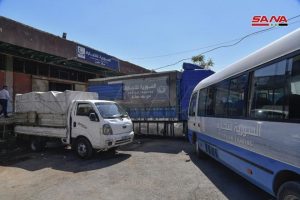 كاميرا سانا تابعت مع سيارات السورية للتجارة انطلاقها من البلدة وحتى وصولها سوق الهال لتوضيب المحاصيل وتعبئتها بسيارات صغيرة تقوم بدورها بإيصالها إلى صالات السورية ومجمعاتها ومنافذ بيعها.