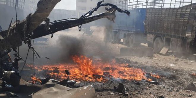 أصيب عدد من المدنيين بجروح نتيجة انفجار عبوة ناسفة بسيارة شاحنة في مدينة إعزاز بريف حلب الشمالي والتي تنتشر فيها مجموعات إرهابية مدعومة من قوات الاحتلال التركي.