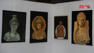 المعرض الذي يستضيفه خان أسعد باشا في دمشق القديمة بإشراف الفنان التشكيلي جورج شمعون والفنانة التشكيلية سماهر دلا شارك فيه أكثر من عشرين فنانة عرضن لوحات تحاكي المنحوتات البارزة المأخوذة من الآثار السورية التي يعود عهدها إلى الألف التاسع قبل الميلاد حتى القرن الثاني الميلادي وقسم كبير منها موجود في متاحف سورية في دمشق وحلب وتدمر وأجنبية مثل برلين واللوفر والبريطاني وشيكاغو وغيرها.