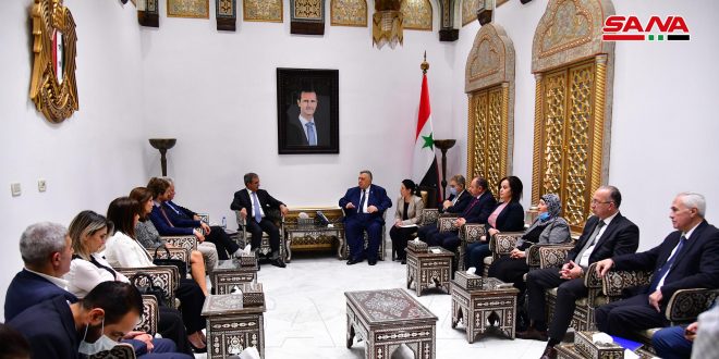أكد رئيس مجلس الشعب حموده صباغ خلال لقائه اليوم تيري مارياني عضو البرلمان الأوروبي والوفد المرافق له أن الإجراءات الاقتصادية القسرية أحادية الجانب المفروضة على الشعب السوري تمثل انتهاكاً صارخاً للقانون الدولي الإنساني ومواثيق حقوق الإنسان داعياً إلى رفع هذه الإجراءات بشكل كامل.