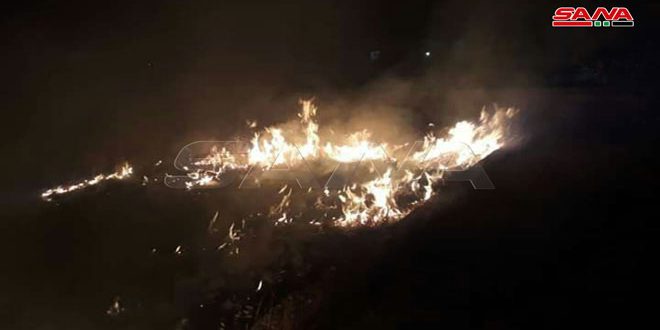 وذكر مراسل سانا بالقنيطرة أن الحريق نشب بعد منتصف الليل جراء إطلاق قوات الاحتلال الإسرائيلي قنابل مضيئة أدت إلى اشتعال النيران في الأراضي الحراجية المحاذية لمنطقة فض الاشتباك بالقرب من السلك الشائك الإطفائي.
