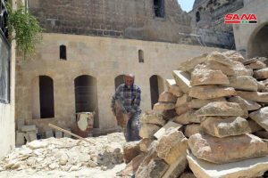لا تهدأ حركة المعاول ونحت الحجارة لإعادة بناء وتأهيل أسواق حلب القديمة لفتح شرايين المدينة التي دمر جزءاً منها الإرهاب ومنها المعروف بسويقة حاتم لتعود تنبض بالحياة من جديد على يد المهرة من بنائيها الذين احترفوا تطويع الحجر والخشب الصلب ليحافظوا على هويتها العمرانية.