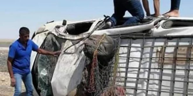 أصيب أربعة أشخاص بجروح ظهر اليوم جراء تدهور سيارة “فان” لنقل الركاب كانت تقلهم على طريق دير الزور-تدمر وتم إسعافهم إلى الهيئة العامة لمشفى الأسد بدير الزور.