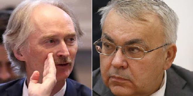 بحث نائب وزير الخارجية الروسي سيرغي فيرشينين خلال اتصال هاتفي مع مبعوث الأمم المتحدة الخاص إلى سورية غير بيدرسون الوضع في سورية وسبل إيجاد حل سياسي للأزمة فيها من خلال عملية يقودها السوريون بأنفسهم.