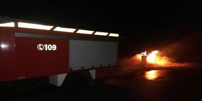 أخمد عناصر الدفاع المدني في حمص بالتعاون مع إطفاء مديرية الزراعة الليلة الماضية حريقاً اندلع بأعشاب يابسة وأشجار شوكية على طريق حمص مصياف بالقرب من سد الحميمة.