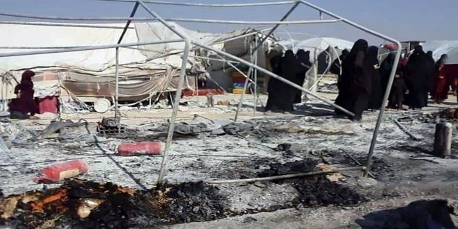 وذكرت مصادر أهلية من بلدة الهول لمراسل سانا أن “حريقاً نشب عصر أمس الجمعة في المخيم ما أدى إلى احتراق 28 خيمة وإصابة عدد من النساء والأطفال أثناء محاولتهم إطفاء النيران ومنع امتدادها إلى الخيم الأخرى”.