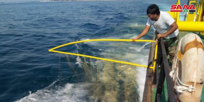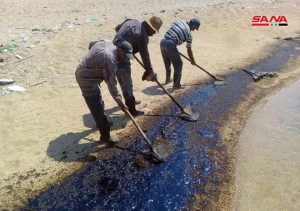 وأشار البيان إلى أن المديرية استكمالاً لدعم جهود عناصر مكافحة التلوث الناتج عن تسرب مادة الفيول من المحطة الحرارية في بانياس ودعماً للجهود اليدوية تستخدم زورق مكافحة التلوث “بصرى الشام” لرش المواد المبددة للبقع النفطية ضمن المياه الإقليمية وسحب بقع التلوث من المياه علماً أن الزورق وبسبب حجمه غير مخصص للتعامل مع التلوث في المياه الضحلة.