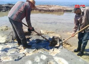 كثفت الفرق الفنية جهودها لاستكمال عملية تنظيف شاطئ جبلة من مادة الفيول المتسربة من محطة توليد بانياس والتي ظهرت في عدة مواقع منها ميناء العزة وضاحية المجد وخليج البحيص والفاخورة القريبة من عرب الملك القريبة من بانياس.