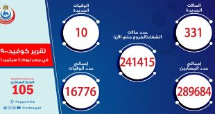 وأوضح الدكتور خالد مجاهد المتحدث الرسمي للوزارة أن إجمالي العدد الذي تم تسجيله في مصر بفيروس كورونا المستجد حتى يوم أمس هو 287644 من ضمنهم 237817 حالة تم شفاؤها و 16714 حالة وفاة.