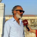 وعن مشاركته في الملتقى أوضح حلواني أنه قدم منحوتة على الحجر التدمري الأبيض بأسلوب تجريد حروفي تمثل مسلة حفر عليها الحرف السرياني الذي هو أساس اللغة الآرامية ويرمز إلى جذورنا الضاربة في التاريخ.