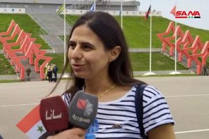 من جهتها قالت الطالبة الموفدة علا اسماعيل أننا اليوم في موسكو لندعم فريق الجيش العربي السوري في هذه المسابقات وأعربت عن الشكر لروسيا لاستضافتها للفريق السوري فيما أكدت طالبة الدكتوراه دارين عثمان على المضي قدماً في سبيل تطوير وتحديث سورية.