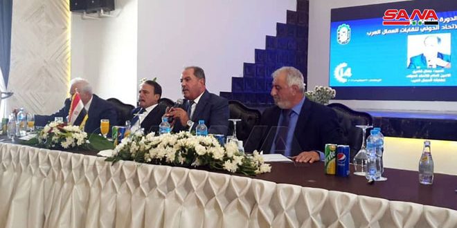 أدان المؤتمر العام الرابع عشر للاتحاد الدولي لنقابات العمال العرب الإرهاب بكل مسمياته وأشكاله معرباً عن تقديره لجهود كل القوى التي تكافحه وتحاربه وخصوصاً شعب وعمال وجيش وقيادة سورية.