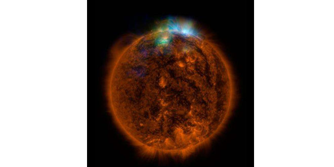 وتعد أحد أقوى أشكال العواصف الشمسية هو القذف الكتلي الإكليل وهو حدث عندما تطرد الشمس إلى الفضاء سحابة من الجسيمات المتأينة والتقلبات الكهرومغناطيسية غالباً في أعقاب التوهج الشمسي.