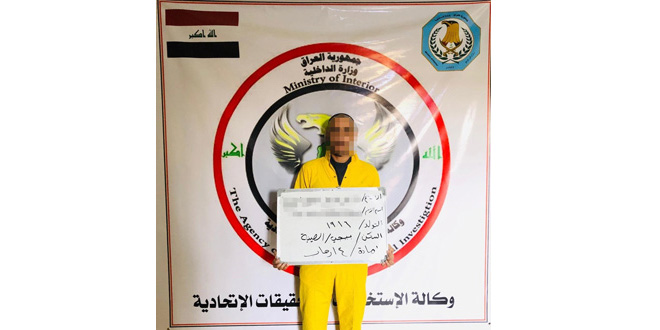 وقالت خلية الإعلام الأمني في بيان نقله موقع السومرية نيوز إن “وكالة الاستخبارات والتحقيقات الاتحادية في وزارة الداخلية تمكنت من إلقاء القبض على متهم مطلوب قضائياً وفق أحكام المادة 4 إرهاب بمحافظة كركوك وبعد التحقيق معه اعترف بأنه انتمى لعصابات “داعش” وعمل مع المفارز الإرهابية لاستهداف منتسبي الأجهزة الأمنية”.