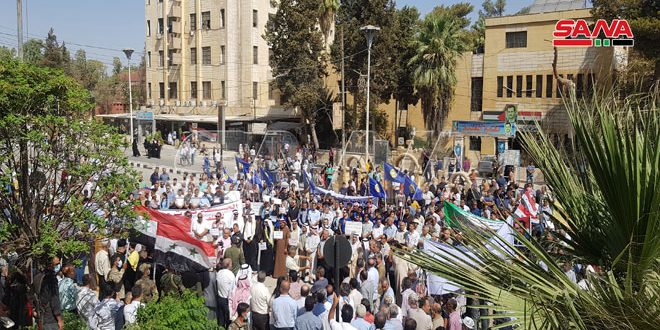 نظمت الفعاليات الأهلية والاجتماعية والدينية والرسمية في مدينة الحسكة وقفة احتجاجية في ساحة السيد الرئيس تنديداً بجريمة قطع المياه من قبل المحتل التركي والتعديات والانتهاكات التي يقوم بها المحتل الأمريكي والميليشيات التابعة له.