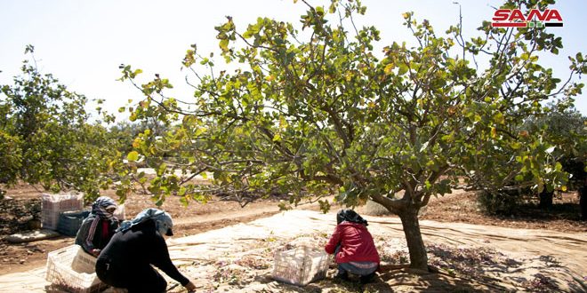 موسم قطاف الفستق الحلبي بحمص… فرص عمل إضافية ومصدر دخل مجز للمزارعين