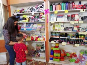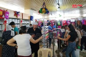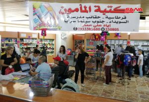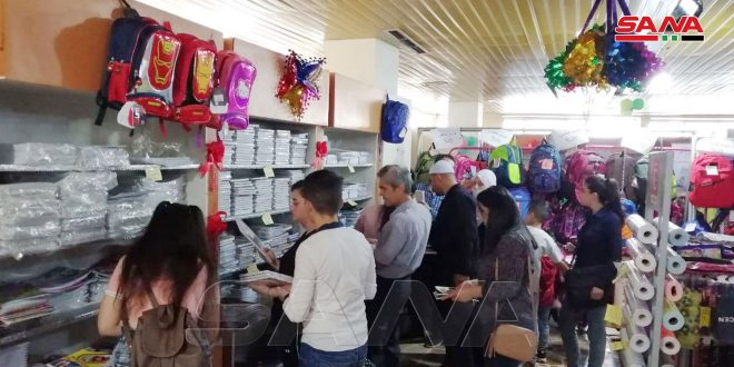 تتواصل في مجمع المزرعة التابع لفرع المؤسسة السورية للتجارة بالسويداء فعاليات سوق العيلة وسط إقبال من المواطنين لشراء احتياجاتهم من القرطاسية والمستلزمات المدرسية بغية تخفيف الأعباء عنهم مع قرب افتتاح المدارس.