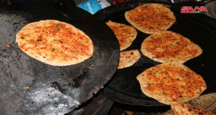 تشكيلة متنوعة من المحمرات والفطائر المحشوة باللحمة والقريشة والسلق والزيتون والجبنة والمرتديلا ومناقيش الزعتر تفوح رائحتها الزكية في الأجواء وتجذب المارة من الشباب والسيدات والأطفال الذين يشدون على أيدي أمهاتهم لشراء بعض منها هي نتاج رحلة من العمل الدؤوب الذي يبدأ مع ساعات الصباح الأولى لتحضير العجينة وتركها لتتخمر بحسب ما ذكرته السيدة ام باسل في حديثها لمراسلة سانا.