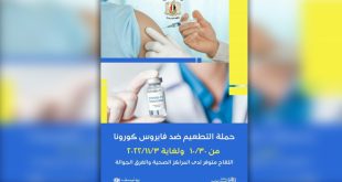تطلق وزارة الصحة اليوم حملة التطعيم الوطنية ضد فيروس كورونا وتستمر لغاية الـ 16 من أيلول الجاري عبر مراكز وفرق جوالة في مختلف المحافظات.
