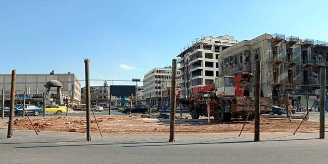 باشرت ورشات مجلس مدينة حمص عملية رفع الساعة القديمة في ساحة الشهداء بمركز المدينة تمهيداً لصيانة وتأهيل دوار الساعة القديمة.