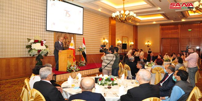 أقامت سفارة جمهورية الفلبين بدمشق حفل استقبال بمناسبة الذكرى الـ 75 لإقامة العلاقات الدبلوماسية مع سورية وذلك في فندق فورسيزنز بدمشق.