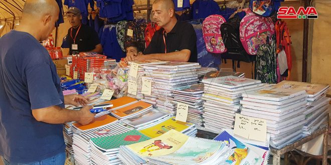 شهد سوق العيلة في مدينة الحسكة في ختام فعالياته اليوم إقبالاً كبيراً من قبل المواطنين لشراء حاجاتهم من اللوازم المدرسية والقرطاسية ومواد المونة.