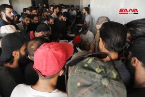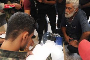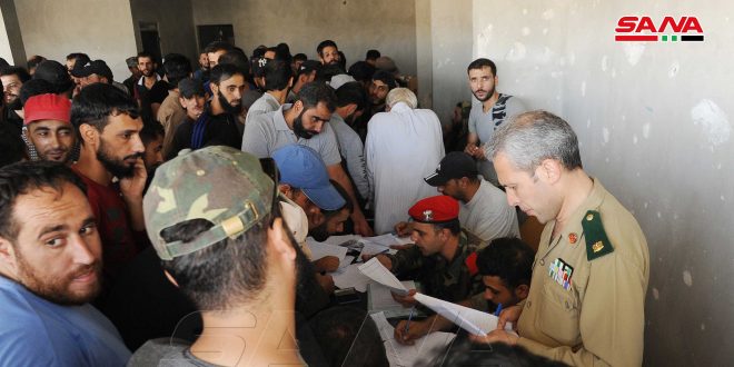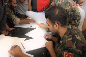 استؤنفت اليوم عمليات تسليم أسلحة وتسوية أوضاع عشرات المسلحين من درعا البلد في مركز التسوية بحي الأربعين وذلك في إطار تنفيذ اتفاق التسوية الذي طرحته الدولة ويقضي بإخراج الإرهابيين وتسوية أوضاع المسلحين وتسليم السلاح.
