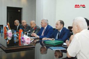 بحث وزير الداخلية اللواء محمد الرحمون اليوم مع الجنرال سيرغي ايفمينيكو رئيس الهيئة الحكومية لفحوص الخبرة الشرعية في جمهورية بيلاروس التعاون في مجال عمل الأمن الجنائي والأدلة الجنائية والتحليل المخبري القضائي وتبادل الخبرات في هذا القطاع.