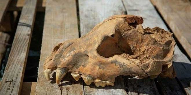 عثر علماء آثار روس على جمجمة ضبع أحفوري عملاق وعظام حيوانات أخرى في كهف تافريدا في شبه جزيرة القرم.