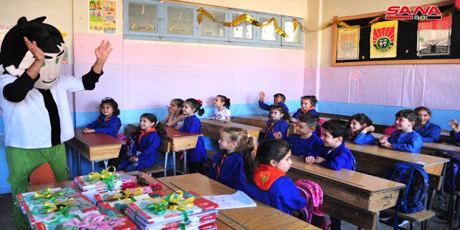 سانا رصدت توزيع الكتب في مدرسة تيسير صوان في منطقة المزة بدمشق حيث أشار مدير تربية دمشق سليمان اليونس في تصريح لسانا خلال اطلاعه على واقع توزيع الكتب إلى أنه مع بدء دوام الإداريين في الأسبوع الذي سبق بداية العام الدراسي باشرت مكتبات المدارس استلام الكتب من المستودعات بالتواصل مع فرع دمشق للكتب المدرسية بحيث يكون 60 بالمئة من الكتب موجودة في المدارس لتبدأ عملية التسليم فيها تدريجيا مع دوام الطلاب.