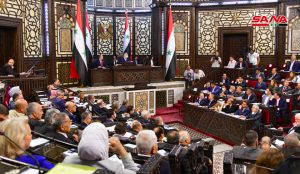 تابع مجلس الشعب اليوم جلسته الثانية من الدورة الاستثنائية الرابعة للدور التشريعي الثالث المنعقدة برئاسة حموده صباغ رئيس المجلس والمخصصة لمناقشة البيان الوزاري للحكومة المتضمن برنامج عملها للمرحلة المقبلة بحضور رئيس مجلس الوزراء المهندس حسين عرنوس والوزراء.