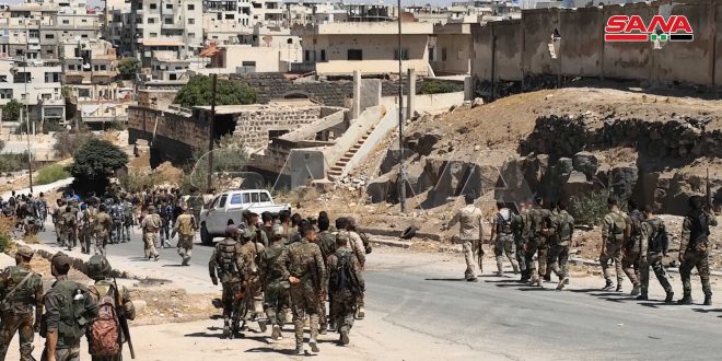 وذكرت مراسلة سانا الحربية في درعا أن وحدات من الجيش دخلت حي درعا البلد وبدأت تثبيت عدد من النقاط تمهيداً لبدء عمليات تفتيش وتمشيط في المنطقة بحثاً عن السلاح ومخلفات الإرهابيين من أسلحة وذخائر وعبوات ناسفة والكشف عن الأنفاق والتحصينات والأوكار التي اتخذها الإرهابيون منطلقا لاعتداءاتهم ضد المدنيين ونقاط الجيش على خط الاشتباك باتجاه الأحياء الآمنة تمهيداً لدخول ورشات المؤسسات الخدمية لإعادة تأهيل البنى التحتية والخدمية إلى الحي.