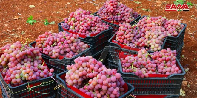 تستمر الشركة العامة لتصنيع العنب بحمص باستلام محصول العنب من المزارعين وسط إقبال كبير.