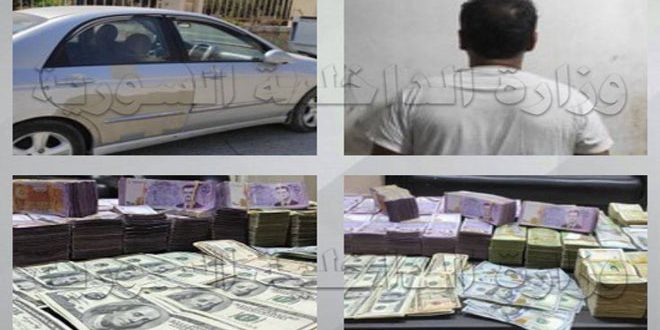 وأوضحت الوزارة في بيان تلقت سانا نسخة منه اليوم أنه نتيجة الجهود التي تبذلها الوحدات الشرطية في ملاحقة الأشخاص الذين يتعاملون بغير الليرة السورية وبعد ورود معلومات إلى فرع الأمن الجنائي في حلب حول قيام شخص بتسليم الحوالات المالية بطريقة غير قانونية تم إلقاء القبض على الشخص المطلوب وصودر منه مبلغ 8370 دولارا أمريكيا ومبلغ 25 مليون ليرة سورية وتم حجز سيارة خاصة نوع كيا سيراتو يستخدمها أثناء عمله.