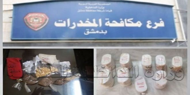 ولفتت الوزارة في بيانها إلى أنه من خلال المتابعة الحثيثة والمراقبة المستمرة تمكن فرع مكافحة المخدرات في دمشق من إلقاء القبض على شخص في محلة معربا كان يستقل سيارة نوع فورد فوكس وضبط بحوزته كمية كبيرة من مادة الحشيش المخدر معدة للبيع والترويج وتمت مصادرتها وحجز السيارة المذكورة.