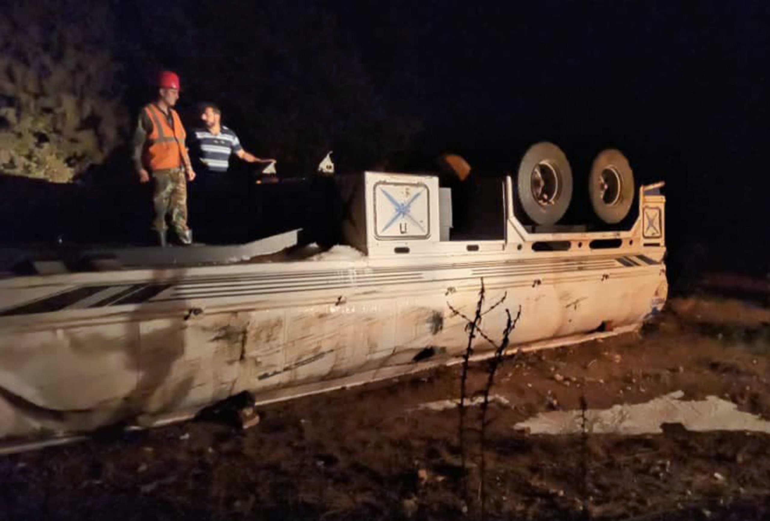 تدهور صهريج محمل بمادة البنزين على طريق الجابرية-زيدل بريف حمص الشرقي كان متجهاً من مصفاة حمص إلى منطقة المخرم.