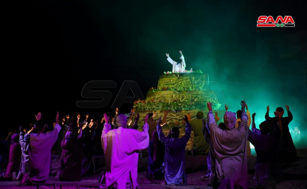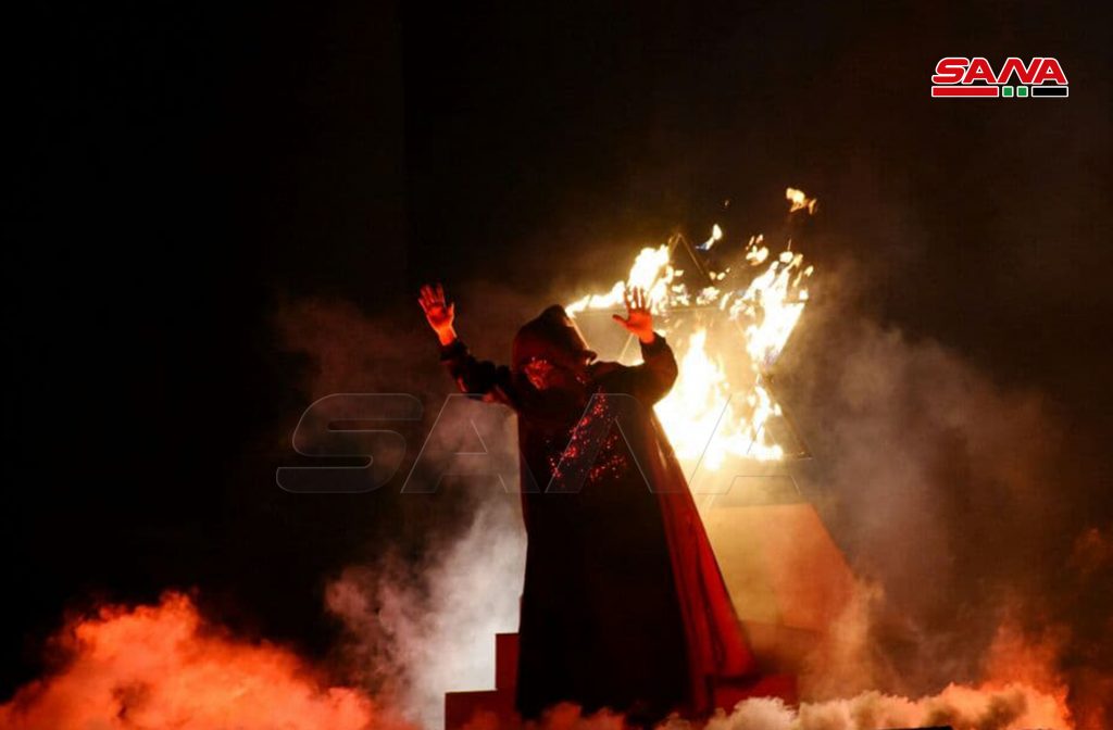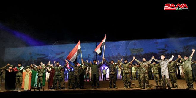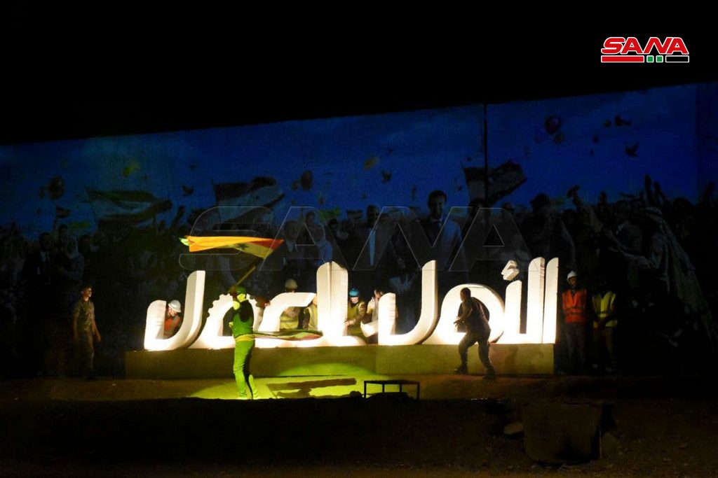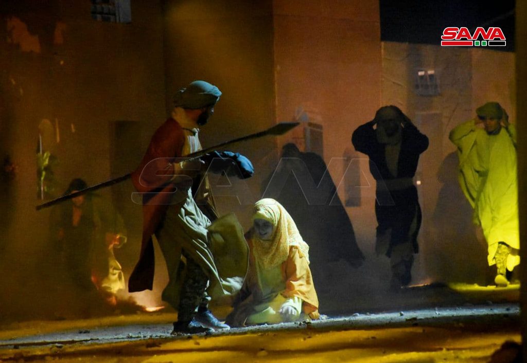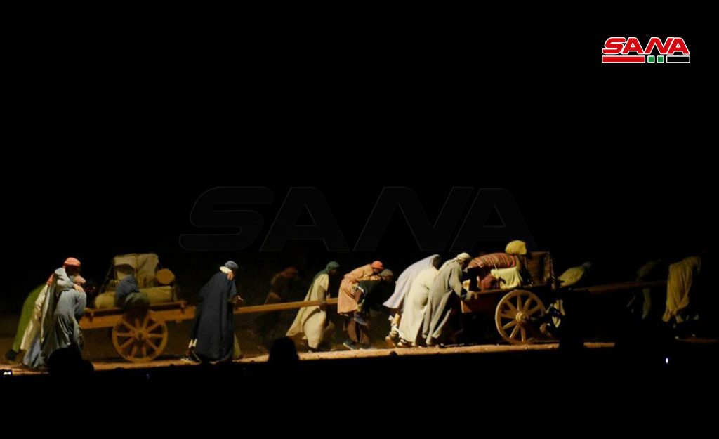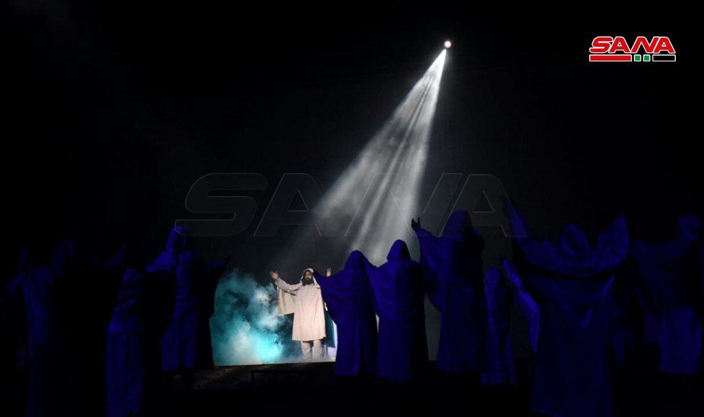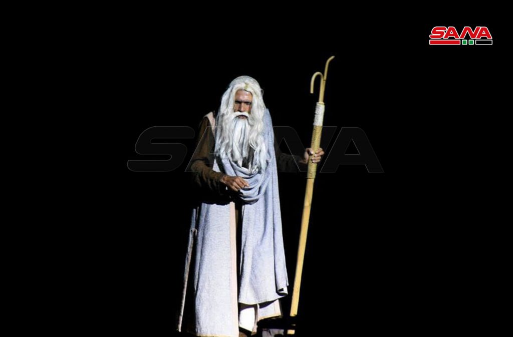 المسرحية التي شارك بها نحو 300 من الممثلين منهم 180 في دور الكومبارس بين صغار وكبار تحدث مخرجها الإيراني “شهاب راحله” في تصريح لمراسلة سانا بأنها رسالة سلام ومحبة من أرض الشمس سورية أرض الأنبياء حيث تتدرج الأحداث منذ عهد أبو البشر آدم وحتى النبي محمد صلى الله عليه وسلم ومواجهة الخير لقوى الشر وصولاً إلى تاريخ سورية الحديث وعرض بعض المحطات المضيئة كمعركة ميسلون وحرب تشرين التحريرية ومحاربة التنظيمات الإرهابية ولاسيما تنظيم “داعش” وإعلان الانتصار السوري الكبير مع مواصلة مسيرة الأمل بالعمل.