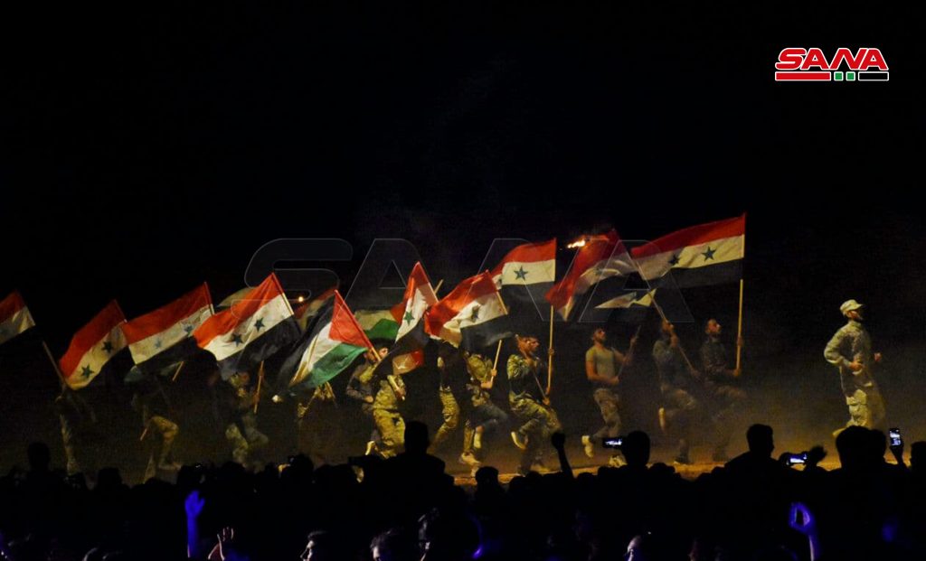 على مدى 120 دقيقة وفي مسرح الهواء الطلق ووسط حضور رسمي وأهلي كبير شهدت أرض الصالة الرياضية في حي وادي الذهب بحمص عرض المسرحية التاريخية “أرض الشمس”.