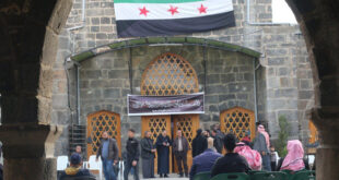 درعا-سانا أقام أهالي درعا البلد يقيمون خيمة عزاء لشهداء الثورة السورية المباركة داخل المسجد العمري