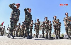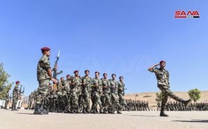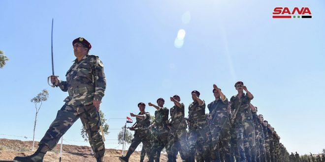 وأضاف: “نجدد عهدنا ووعدنا بالبقاء جنداً أوفياء لسورية الإباء ندافع عن ترابها ونصون كرامتها داعياً إلى الحفاظ على أعلى درجات اليقظة والاستمرار والجاهزية القتالية والجدية والمثابرة في التدريب للوصول إلى المهارة في استخدام السلاح والعتاد وصونه باعتباره أمانة بين أيدينا”.