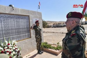 وتم خلال الاحتفال وضع إكليل من الزهور على النصب التذكاري لشهداء الدفاع عن سورية العروبة كما تضمن الحفل عرضاً واستعراضاً لقوات “حطين” و”أجنادين” وفقرات تجسد مهارات الرمي والقتال القريب ومسابقات رياضية وتكريم أسرة الشهيد العميد وليد الكردي.