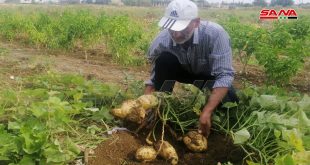 وخلال لقاء مع مراسل سانا أوضح فضة أن إنتاجه من البطاطا الحلوة بلغ العام الماضي 600 طن متوقعاً أن يتضاعف الإنتاج هذا العام مبيناً أنه بدأ زراعة البطاطا الحلوة بمساحة صغيرة لا تتجاوز هكتاراً واحداً عام 2007 ثم توسع في مشروعه ووصل الآن إلى 40 هكتاراً تقريباً ليغطي السوق المحلية في مختلف المحافظات ويؤمن مصدر دخل لما يقارب 48 عائلة تضم أفراداً من مصابي الحرب وذوي الشهداء.